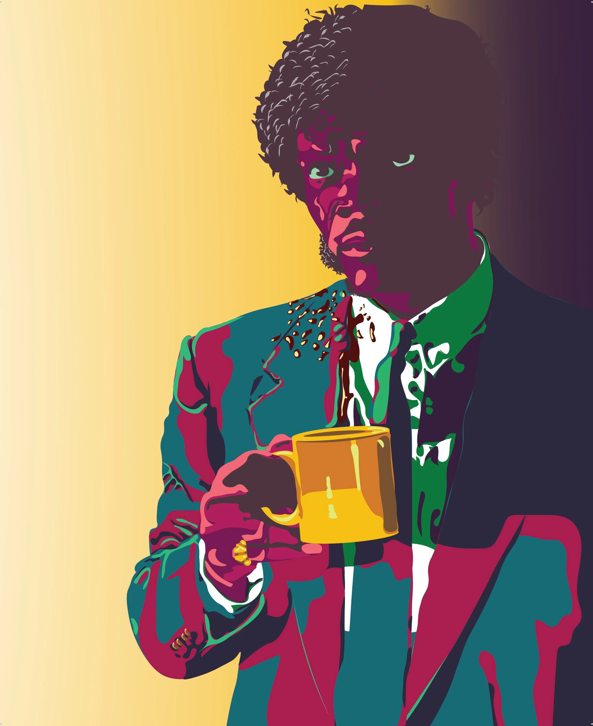 A color-theory study exploring how different palettes change the mood of the same illustration. Each version of this Jules Winnfield portrait uses a unique harmony—analogous, split-complementary, double-complementary, and low-key. Created in Adobe Illustrator as part of my ongoing digital illustration and color-theory practice.